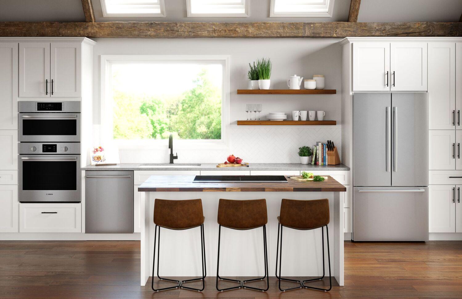 The Bosch 30' stainless steel Speed Combination Oven combines your favorite kitchen tools into one appliance. The upper speed oven functions as both a microwave and a convection oven so you have cooking flexibility. Use the lower wall oven to bake, broil, roast, proof and even as a warming drawer. Convection Pro ensures food is always cooked evenly, no matter where you place your pan. Varied capacity options allow enough space to cook everyday meals or for a crowd. Easily maintain the oven with the Self-Clean option which makes cleanup simple and convenient.